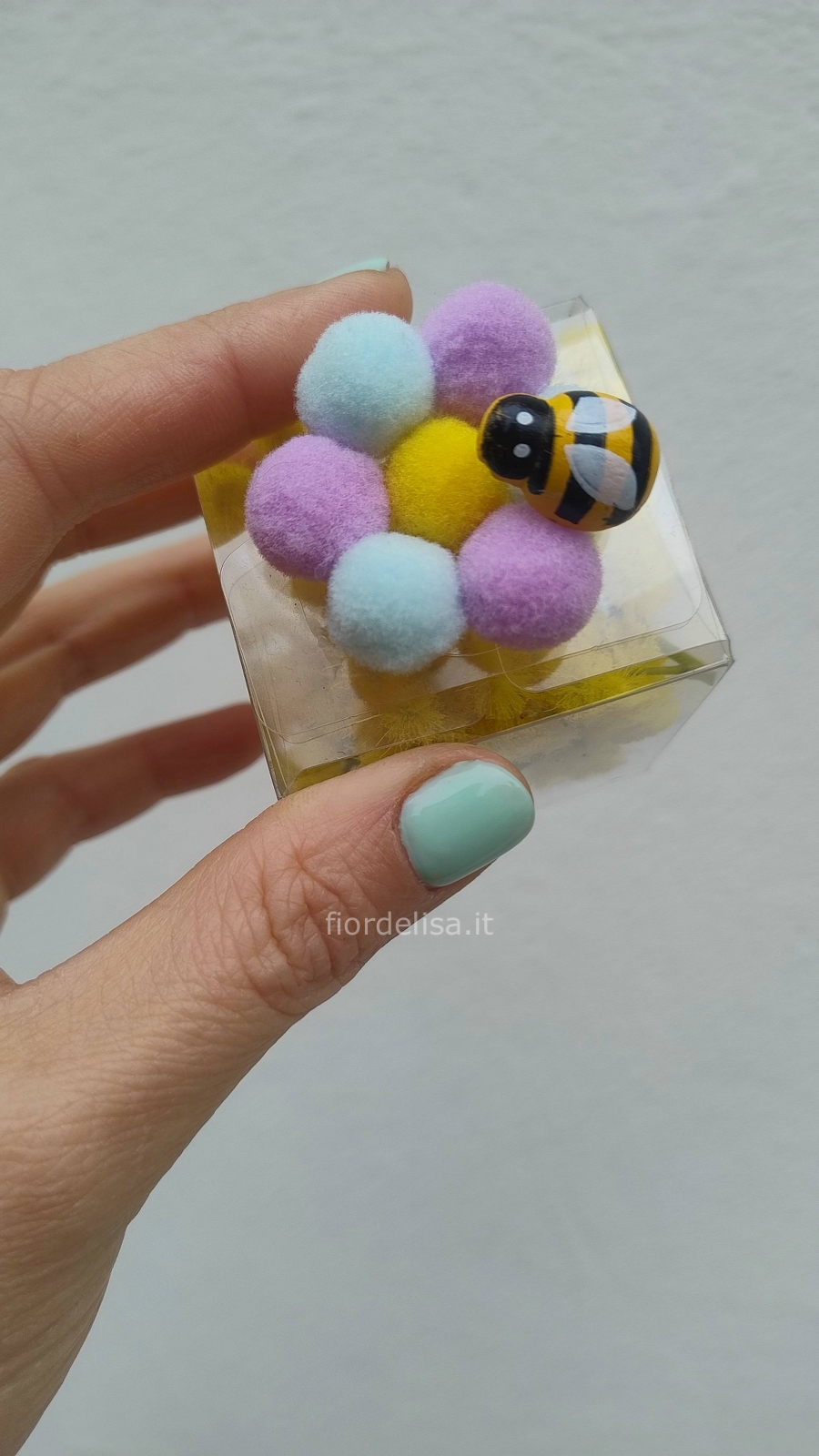 | Scatolina con fiorellino, apetta e mimosa Cod. 125844 | € 4,00 | Quantità : | |